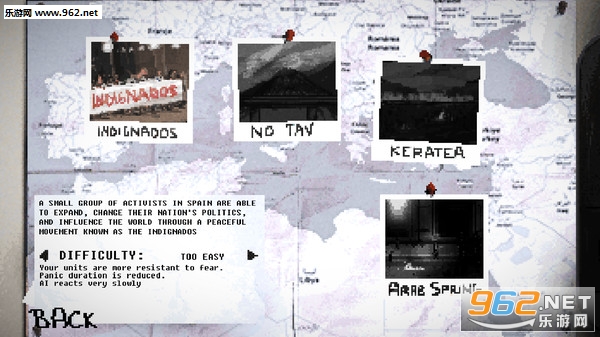 四个情景,共十六场战役关卡,场景分别为; Keratea(希腊),NoTAV(意大利),Indignados(西班牙)和Arab Spring(埃及)。