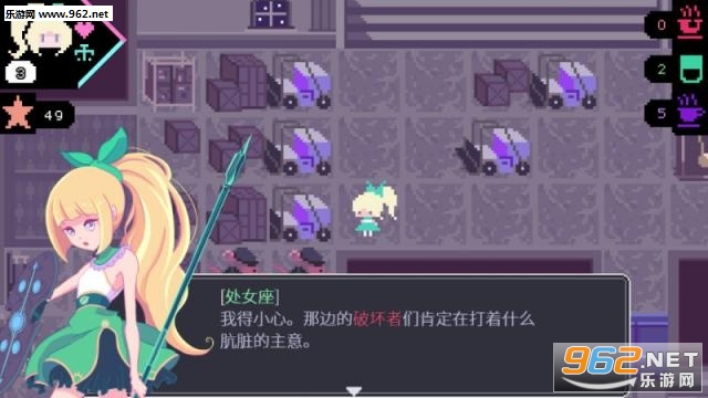 《处女座VS黄道十二宫(Virgo vs the Zodiac)》是一款像素级别风格的日式RPG回合制游戏。玩家将在游戏中扮演处女座圣女去挑战黄道十二宫的王国传统,因为在圣女的眼中,其他十二宫成员的信仰已经偏离了正义的方向!