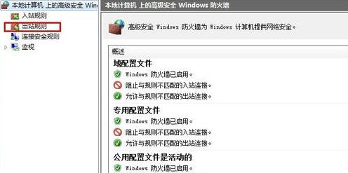 步骤3:点击左边的出站规则,新建一个出站规则,如下图所示。