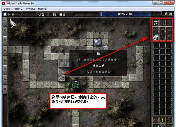 右上角还有一些建塔和建墙的功能,新手玩家朋友们千万不要忘记了,不然每一关都饰淦鼾不了的哦。