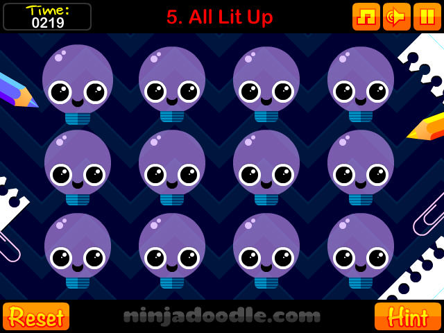 5、先按左上角灯泡,再按照灯泡眼睛的方向去点下一个灯泡