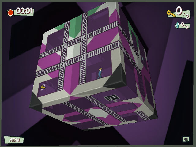 独特的旋转视角让游戏的可玩性很高,玩家需要先收集盒子里所有的钥匙来打开终点,因为需要在盒子上不断的来回跑,所以方向感不好的话容易找不到路。