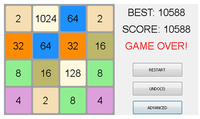 玩家自制的电脑版2048,可以悔三步棋。