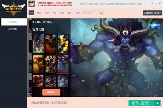 注:运行此程序前,需要先启动LOL游戏客户端,再运行换肤大师。