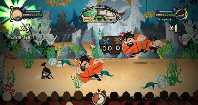 这款横版闯关游戏设计的非常有意思,独特的场景设计给玩家的感觉像是在一个剧场之中,你的连击水平越高,就能够赢得观众们越热烈的 我现在是给你买啥 啥不要啊,嘿嘿喝彩。