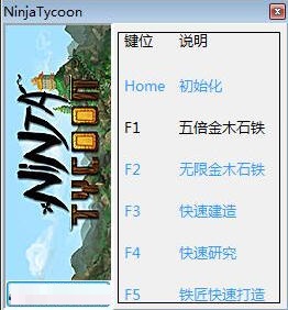 忍者大亨五项修改器绿色版是一款专门为忍者大亨游戏制作的修改器工具,忍者大亨五项修改器绿色版具有五倍资源、无限资源、快速建造、快速研究、铁匠快速打造五项功能,让你在游戏中更加方便!