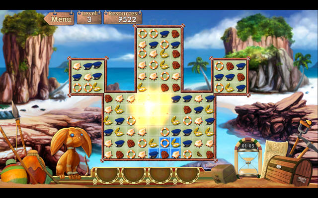 玩家的船搁浅到了一个未知的小岛上,为了生存,你必须在这个小岛上建立起你的王国来,通过消除小游戏来赚取各种资源吧。