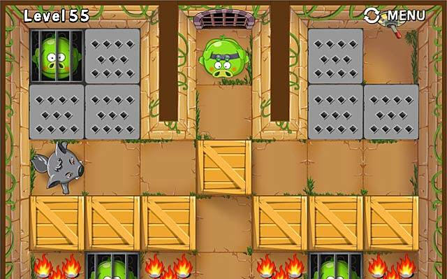 看起来颇具喜感的画面,让这款经典的推箱子主题游戏变得老少皆宜,这款推箱子游戏中,你不仅要解救你的三只小猪同伴,同时还要提防大灰狼。