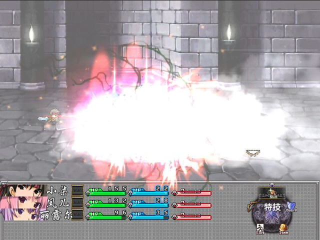 这是一款短篇RPG,无论在系统上还是画面上,都做到最好最完美,当然剧情也没有忽略掉。战斗系统采用类似最终幻想系列的ATB回合制战斗系统,做到每个角色赋有的技能各部相同 都具有一定的华丽性。地图方面作者也非常用心的去绘制了。