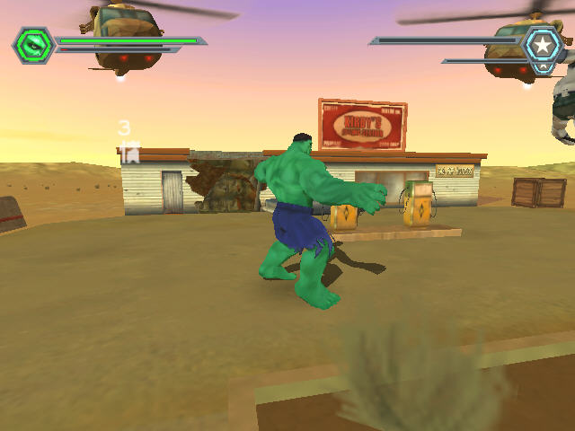【游戏简介】: 《绿巨人》和电影同时改编自美国七十年代的畅销漫画《绿巨人hulk》,描写军事科学家布鲁斯·般尼尔因为辐射外泄改变了身体,每当情绪激动后就会变身为拥有超能力的绿色巨人,美国军方认为他有犯罪的嫌疑,是个威胁,所以急切的想把他抓住。在美国,绿巨人是与超人、蜘蛛侠齐名的虚拟人物。 游戏的操作很好,玩家控制的按钮不太多,方便易玩。游戏的介面也很清晰,图标简洁明了,动作酣畅淋漓,即使没有玩过这个游戏也很容易上手。玩家可在遊戲中扮演片中冷靜內斂的男主角布魯斯班納爾博士,或憤怒後而變身的綠巨人,巧妙地交互使用隱密的行動能力和強大的破壞能力來突破25個關卡。同時,玩家可以時而像是個超級情報員上山下海探查搜索,有時則變身為超級格鬥士,與來自四面八方的敵人戰鬥,玩家可以選擇使用超過15種的格鬥招式,包括超級技音速拍擊、伽瑪頓踩、毀滅暴擊等大絕招。此外,在遊戲中出現的任何物件,包括人、車、房屋等,都可以成為玩家信手抓取的武器。