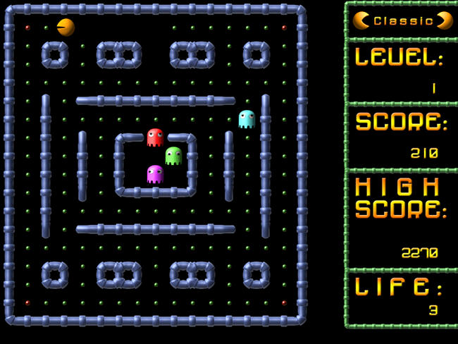 吃豆人的小游戏我们小时都玩过,这次出现在电脑上,能不兴奋么。玩法一样,画面一样。但是关卡不一样了,很不错