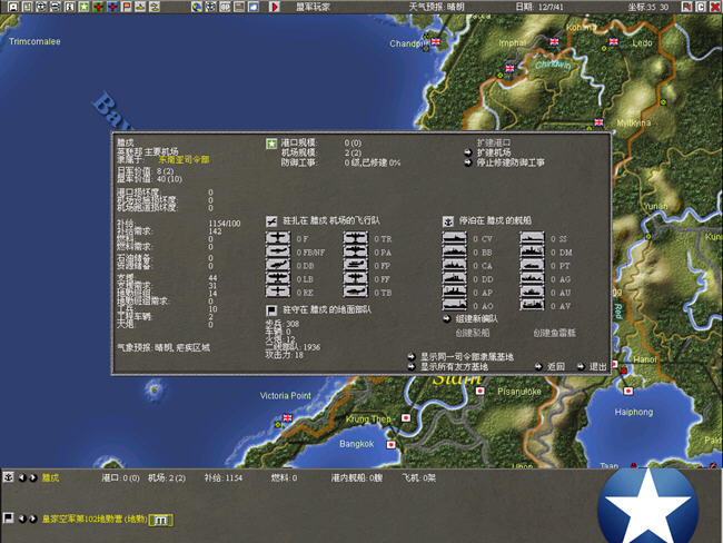 由Matrix Games 负责发行的(War in the Pacific: Struggle Against Japan 1941-45)是一款回合制策略游戏,游戏以《非凡的勇敢》引擎为基础(Uncommon Valor,由Matrix Game和2by3 Game两家公司联合制作的战略模拟类游戏,专注于南太平洋战场)。这款游戏涉及范围巨大,包括了成千上万的舰船和飞机,它们都是以真实原型的比率设计的,游戏的一个回合包括7个阶段,玩家可以选择继续战斗或随时停止.MatrixGame是老牌的战略游戏开发公司,旗下发布过十几款优秀的战争模拟策略游戏,另一家合作公司2by3Game很有意思,是由3个战略游戏狂人联合成立,目标是做最专业的二战游戏(这也是公司名里“2”的来源,so world war 2by 3 guys, haha),而且他们的确做到了。言归正传,与前作相比,War in thePacific(下简称WITP)获得了巨大的突破,在UV的基础上将战场扩展到东自阿拉斯加、旧金山,西达印度卡拉奇,北至苏联伊尔库兹克,南界澳洲塔斯马尼亚和新西兰南岛的巨大空间。最大的改进在于引入了生产系统,日方玩家可以在一定程度上自行调整工业、造舰、飞机研究和制造,与倭人的《提督》系列相比,最大限度的仿真是本作的特色。 在WITP里,玩家将控制海陆空每一个单位的动作,陆军包括美、英、中、苏、澳、新、印、菲、荷等几乎全部主要参战国,日方则按照史实划分为本土军、关东军、中国派遣军、南方军等若干个派系,甚至连中国地区的游击队、越南的日本傀儡军都会在游戏里出现,海军单位大到信浓、大和,小到驳船和鱼雷艇(PTBoat,记得麦克阿瑟从菲律宾跑路的那条吗),空军更是具体到每一架飞机和每一名飞行员(找找莱城的清扫三重唱吧)!!!由于WITP的设计太庞大,很难在几千字内描述清楚,大体上来说,WITP是最接近真实历史的太平洋战争战略模拟游戏,战术层面的模拟程序也相当出色,强烈建议玩家将所有讯息的显示时间调整到0.5s以上,并且选择观看战斗动画,你会发现在战斗中无法控制每艘战舰的行动,游戏里却综合了各种因素给出了科学合理的模拟,包括某一方对另一方的偷袭(SupriseAttack),包括抢占T字阵头,包括鱼雷攻击,包括弹药库徇爆,包括打光弹药或者是武器损坏,伤重的舰只将不得不从原舰队中分离出来,当然你也可以指派一些舰只去护航,这一切都能在太平洋海战的某些场景里找到。 与WITP最接近的游戏有倭人的提督系列(特别是提督3),但模拟度上提督差太远了,比喻舰队上空的直掩机(日方叫法,美军叫CAP,CombatAir Patrol,空中战斗巡逻),提督3中的直掩机主要用于封堵住舰队上空的投弹区域