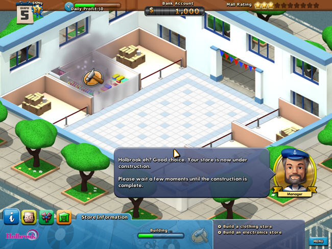 《超级购物城》,经典幻想游戏之一。游戏中具备了大亨类经营形式,玩家可以在一座座空旷的商城中开设店铺,聘请员工,美化环境,并使用时间管理系统将这些要素加以约束,设计出多重的过关任务。《超级购物城》同《疯狂农场》和《地产大亨》系列都有着一些相似之处,是一款全新题材的趣味策略模拟游戏。