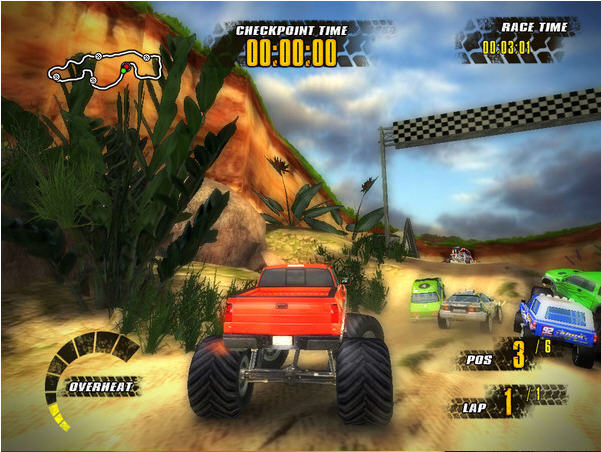 丛林赛车手是今年Hand Made Games发行的一款赛车游戏,游戏体积很小画面却十分精致,而且车辆很丰富,有怪物大脚车、拉力赛车、皮卡、手推车,在一起相互竞争。多尝试撞击对手而赢得比赛。游戏共具有三种比赛模式。操控方法: 方向键-加速、刹车、转弯; x - 额外加速; r - 重置车辆 。
