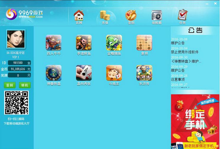 9969游戏是G9969游戏公司经过多年的研发的一款游戏平台,目前已上线棋牌游戏产品多款,正在开发中的产品多款。公司的目标是通过两年时间的努力,力争成为在线人数最多影响力最大的棋牌游戏平台。喜欢玩游戏的小伙伴可以下载9969游戏体验一下。