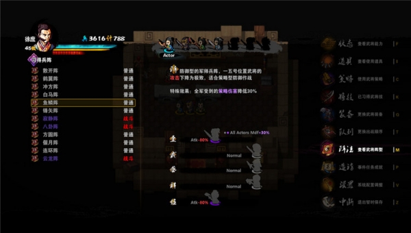 「阵法」游戏中获得了阵法刻印之后,便可习得各种阵法,理想的阵法的布局,可让刘备军飞起!