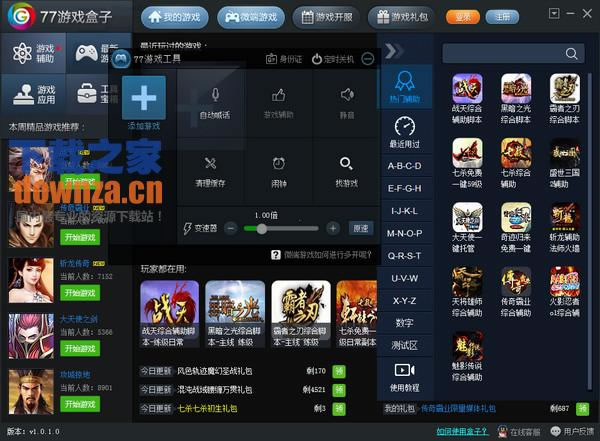 77游戏盒子是一款专为微端网页游戏用户定制的网页游戏辅助工具,屌丝必备,77游戏盒子支持小号多开,礼包领取,帐号保存,游戏辅助,自动喊话,定时关机等多种实用功能,涵盖网页游戏辅助一切功能。