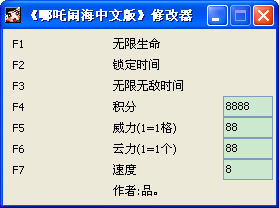 哪吒闹海中文版 [nznhzwb] [修改器] [686KB](西西辅助),哪吒闹海中文版修改器功能介绍:F1 无限生命F2 锁定时间F3 无限无敌F4