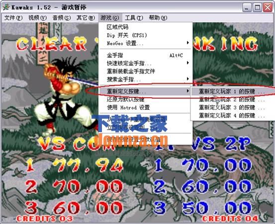 8, 游戏按键的更改,必须在已经进入游戏的状态下进行修改,点击菜单的――游戏――重新定义按键――重定义玩家1的按键――然后单击想修该的按键对应的框,输入想设置的按键,最后点确定即可。如图: