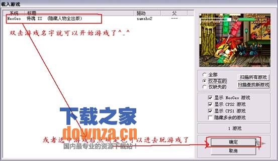 6, 然后左边的列表会显示出来你已经拥有的游戏,选择一个(比如:侍魂2),双击游戏名字,或者选中游戏后点确定就可以进去玩游戏了,^_^~~如图: